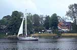 Am 19. Mai 2000, exakt um 11.37 h berührt der Kiel der Kathena nui die Wasseroberfläche der Schlei, zerschneidet sie und Sekunden später schwimmt mein Boot im trüben Hafenwasser der Marina Brodersby. 12 Jahre stand das 10,50 Meter lange Schiff ununterbrochen aufgebockt auf einer Kuhkoppel hinter unserem Haus. Normalerweise sollte man Luftsprünge veranstalten, wenn man sein Boot nach so einer verdammt langen Zeit seinem Element wieder überläßt. Doch es langt bei mir gerade für ein gutes Gefühl. Astrid, meine Frau, sorgt sich derweil um Fotos. Ich werfe rasch einen Blick in die Bilge. Klasse, trocken. Dann hängt auch schon der Mast am Kran und muß sofort gesetzt werden. Schließlich sind wir in einer Werft, der nächste Kunde wartet bereits auf seinen Sliptermin. Aber Kathena nui macht keine Probleme, sagt doch der Slipmeister erfreut: "Ihr seid die einzigen in diesem Jahr, die keinerlei Anlagen im Masttop montiert haben." Während ich die Spannschrauben durchsetze, schlägt Astrid die Segel an. Kathena nui ist motorlos. So müssen wir halt segeln, um das Schiff zu verholen. Nachdem Fallen und Schoten klariert sind, stoße ich das Boot vom Werftkai ab. Im Nu stehen Groß und Klüver, und weg sind wir mit Kurs die Schlei ein Stück runter. Alles funktioniert vorzüglich. Astrid und ich haben nichts verlernt. Sanft legt sich das Boot nach wenigen Augenblicken zwischen die Dalben des Missunder Fährhauses. Erst hier freuen wir uns über das Comeback der Kathena nui. Mit einem Sixpack Asgaard. Das ist das göttliche Bier der Wikinger, das in Schleswig gebraut wird.