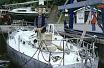 Hier und da waren einige technische Installationen etwas schwergängig. Die Winschen zum Beispiel, die nahm mein Sohn Kym auseinander, der Ruderschaft wurde mit Spüli durchgewaschen, die Aries, eine mechanische Selbststeueranlage, mit WD40 gereinigt und gefettet. Eine Freude war der Mast. 12 Jahre Lagerung in einer Scheune hat er einwandfrei überstanden: keine einzige Oxydation in der Nähe der Nieten und Nirobeschläge. Also, alle Beschläge am Profil sind makellos. Sie wirken vertrauenerweckend. Hier muß ich dem Mastbauer Herrn Köncke von der Firma Reckmann für seine Arbeit sehr danken. Das klingt alles sehr euphorisch, soll es auch, schließlich läßt sich ein Mast mit außenlaufenden Fallen einfacher auf seinen Zustand kontrollieren und abschließend beurteilen. Eine der angenehmsten Tätigkeiten vor einer Reise ist das Auswählen und Auspacken von neuem Tauwerk. Ich bekam von der Firma Liros einen Karton voll geschenkt zum Geburtstag. Prestretch, Color, Herkules die gängigen Marken. Ich bevorzuge vor allem verschiedene Farben, sodaß sie auch bei Dunkelheit deutlich zu unterscheiden sind. Probleme bereitet mir immer, genau wie Löcher durchs Aluminiumdeck bohren, diese schönen langen grünen und weißen Enden zu zerschneiden. Ich kann mich schwer entschließen. Andererseits: Wenn man neue Fallen einschert, Schoten und Smeerreeps auf Länge bringt ist man fast schon unterwegs. Aber nur fast.