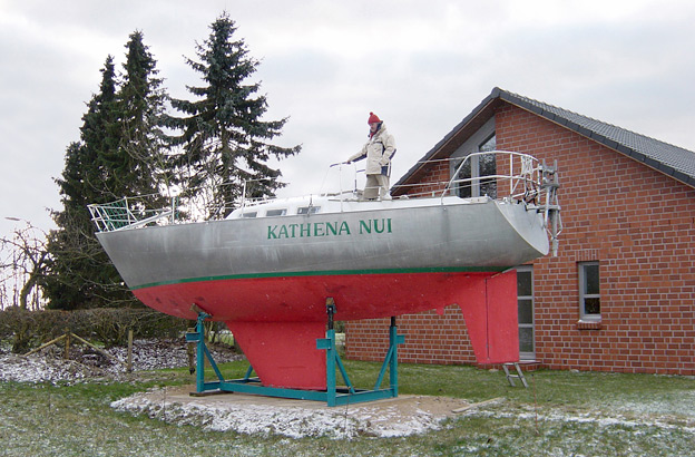 Wieder: Weihnachten. Neues Jahr. Grüße versenden. Geschriebene Karten von der Liste streichen. Geschenke kaufen. Kekse backen. Kerzen anzünden. Kerzen auspusten. Und in diesem Jahr haben wir vorm Wohnzimmerfenster einen zugefrorenen Teich. Eigentlich eher eine Überschwemmung. Die einzige noch übrig gebliebene in unserem Dorf. Die anderen wurden im Laufe der Jahrzehnte alle trocken gelegt. Uns tut eine entspannte Weihnachtswoche gut. Haben wir doch in diesem Jahr viel zu tun gehabt: Zwei Bootsmessen mit Schiff bestückt, Video und DVD hergestellt, Texte geschrieben, Diavortrag mit Originaltönen und Musik zusammengestellt, undsoweiter. Ein zuviel an Entspannung wird’s nicht geben. Bis Ende erste Januarwoche muss ich ein Buch fertig stellen: "Tausend Tage Robinson" wird neu aufgelegt und mit ergänzenden Texten und teils neuem Bildmaterial versehen. Erscheinen ist für Ostern geplant. „Robinson“ ist das Buch von der Weltumseglung mit Astrid 1969/72. Als wir noch verdammt jung waren. Tja. Ab Februar stehen wieder Vorträge an. Wie läuft so was ab. Einen erlebnisreichen hatten Astrid und ich im höchstgelegenen Segelclub Deutschlands: Club Maritim Bad Steben auf 580 Meter das ist im tiefsten Frankenwald. Ankunft nach vielen Stunden PKW-Fahrt um 14 Uhr in Lichtenberg, dem Städtchen nebenan. Eine Werksbesichtigung des Tauherstellers Rosenberger/Liros steht an. Flechtmaschinen arbeiten langsamer als erwartet. Dafür gibt’s eben Qualität. Weiter geht’s nach Bad Steben. Um 16 Uhr Stollenessen und Kaffee trinken in der Konditorei Reichl mit dem Vorstand des Vereins. Danach endlich Hoteleincheck und Gesichtswäsche. Ab 17.30 Uhr Aufbau der Vorführgeräte und Tonanlage. Zwischendurch Gespräche mit besonders neugierigen und interessierten Seglern. 19.30 Uhr Beginn meiner 90-minütigenVeranstaltung mit Life Kommentar. Anschließend Fragen und Antworten. Bücher signieren. Um 22.00 Uhr Abbauen und Einpacken der Geräte und später gemeinsames Büffetessen mit Umtrunk im Klubheim. Das Hotelbett spürt uns gegen 02.00 Uhr. Das ist aber noch nicht das Ende der Bad Stebener Veranstaltung: Morgens Frühstück mit dem Vorstand samt Abrechnung und Geschenken (Stollen, Schinken, Pralinen und dergleichen). Danke für die exzellente Betreuung. Danke. Wagen packen und dann sind wir wieder "on the road". Die 11,50 Meter lange Slup OLE HOOP ist verschollen. Und mit ihr die Crew Johanna Michaelis und Klaus Nölter. Ich bin den Beiden nie begegnet, sie haben aber ein wunderschönes Buch geschrieben. Das "Hamburger Abendblatt" und die "Yacht" haben mich über den Notruf informiert. Die letzte Position der Segler per Notrufbake: etwa 55 Grad Süd und 73 Grad West 200 Meilen westlich vom Kap Hoorn oder knapp 80 Seemeilen vierkant zur Küste Feuerlands. Eine zerstörerische Wetterecke: ansteigender Meeresboden (von 4000 auf 1500 Meter), verquere Meeresströmungen, 6 Grad Wassertemperatur. Die "Yacht" hat ein paar Zeilen von mir gewollt: “Wie kann sich der Leser das Wetter dort vorstellen?" Die Antwort ist mir nicht sonderlich gelungen (zu lesen in "Yacht" Nr.2). Vermutlich war ich zu zurückhaltend. Mit diesem Schiff wäre ich wohl nicht dorthin gesegelt: weite Überhänge, Mast durchgesteckt, Deck und Aufbau aus Holz, großes Cockpit. Was die gesamte Kap-Hoorn-Region so gefährlich macht sind vor allem die schnell wechselnden Stürme in Stärke und Richtung, sodass enorme Kreuzseen entstehen, die immer wieder Segler in Bedrängnis bringen. Das heißt, man wird schon mal richtig von einer Welle zugeschüttet oder schlimmer: schießt bugüber einen Wellenberg hinab. Ich hatte mit KATHENA NUI auch Glück und natürlich vorgesorgt: kleine, metallene Klappluken, winzige Plicht, Mast an Deck stehen, Backstagen, wasserdichte Sektionen im Rumpf und nicht zuletzt Werkstoff Aluminium. Vielen herzlichen Dank all denjenigen, die geholfen haben, uns ein überaus erfolgreiches Jahr zu bescheren. "Allein gegen den Wind" belegt in der Jahresbestseller-Liste Platz 47.