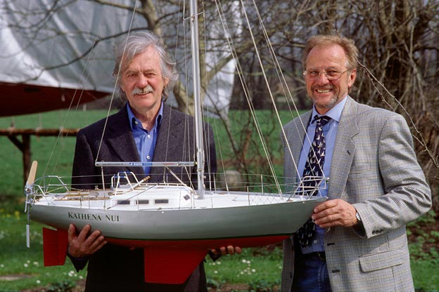 Herr Müller ist Fernmeldeingenieur, 57 Jahre alt und Katamaransegler auf Binnenseen. Beide hoffen wir, dass sich irgendwann und irgendwo die Gelegenheit bietet, das Modell einem Interessentenkreis zugänglich zu machen. Der richtigen KATHENA NUI sind, auf welche Weise auch immer, zahlreiche Leute verbunden. Das zeigt sich, indem sie hier von weither vorfahren, „um mal die Hand ans Boot zu legen“. Ich erinnere mich auch an die „boot“ in Düsseldorf 2002, wo Besucher viel Zeit und Mühe investiert haben, um sich an Bord umsehen zu können.