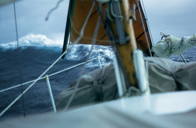In dunkler Nacht am 6. April 1972. Es war der 107. Tag auf See. Wir waren mit dem Stahlboot KATHENA 2 unterwegs von Madagaskar nach England. Es wäre fast unser letzter Tag gewesen. In der Biskaya schlug im Orkan ein Brecher zwei unserer großen Fenster ein. Das Wasser strömte in die Kajüte. Hoch bis zum Kojenrand schwappte es. Nass, kalt und ängstlich kamen wir aus diesem Absturz heraus. Ein unvergessliches Erlebnis unserer gemeinsamen Weltumseglung. Dennoch sind wir beim Segeln geblieben.