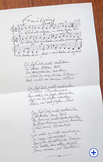 ![]() ![]() ![]() Ganz aktuell: Eine Legende ruft an. Wolf Biermann ist auf Besuch in Missunde. „Ich bin auf einer Landpartie mit dem Segelboot.“ Wir werfen uns in den Wagen und sind Minuten später bei dem Lyriker und Liedermacher an Bord. Er ist mit zwei Freunden unterwegs und an Bord nur Mitsegler. Wir kennen ihn, klar, aus Büchern und Konzerten aber auch aus Söby/Dänemark, wo er Astrid das beidhändige Schreiben hat beibringen wollen. Diese Skizze habe ich halbseitig in meinem Buch