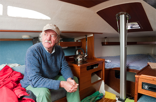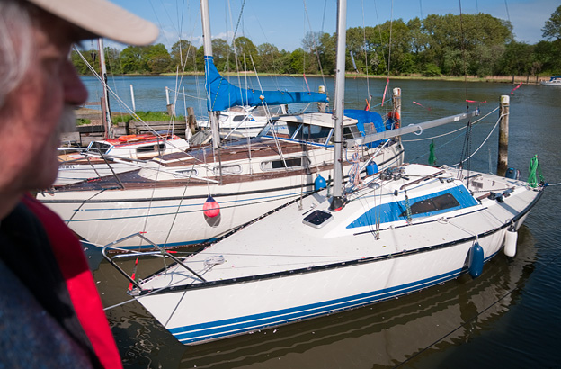 „Die skandinavische Acht“ „aufbewahrt“. Dafür um Erlaubnis gefragt habe ich Wolf Biermann nicht. Das geht mir bei unserem Wiedersehen durch den Kopf. Hoffentlich merkt er es nicht an. Nein, er freut sich. Fragt auch sonst nicht, was ich und wir so im Leben machen. Jedenfalls gibt’s keine langen Vorreden, er stellt gleich seine Segelfreunde Burkhard und Manfred und deren Schiff VIKING vor und greift zur Gitarre. Dazu gibt es original französischen Landwein und unterhaltsame und teils weniger amüsante Geschichten. Von ihm und über sein Leben ist in den letzten Jahrzehnten bei Gott vieles veröffentlicht worden. Nein, wir reden ganz allgemein über das Leben und den Tod (sein Freund Arno Lustiger ist an diesem Tag gestorben), über die Liebe, über die Zeit des Mauerfalls und die daraus resultierenden Umbrüche, also auch über meine Jollenreise durch Mecklenburg-Vorpommern im Jahr nach dem Mauerfall, die er in meinem Buch gut beschrieben fand. Wolf Biermann ist alles, aber kein Segler und trotzdem sagt er dies über den Palstek: „Der Knoten, den man nach tonnenschwerer Belastung mit einem Finger öffnen kann eine wundersame Erfindung.“ Den kann er blind.