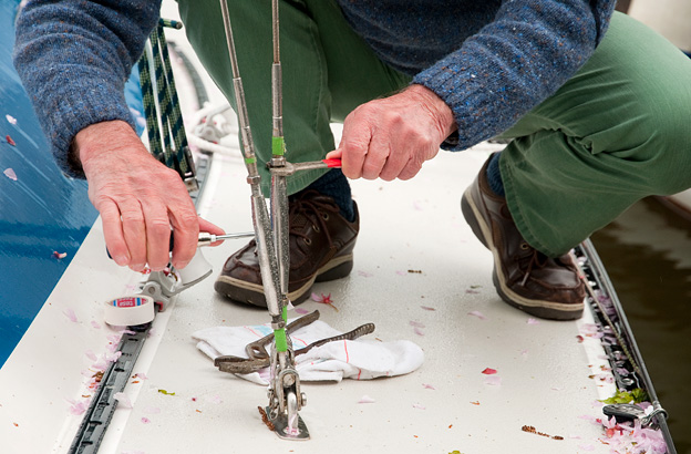 KATHENA X ist zu Wasser. Der 12,50 Meter lange Mast gesetzt. Wanten und Stagen justiert. Wasserkessel und Kaffeekanne platziert. Also klar zum Ablegen. Wäre das Wetter nicht so hässlich, täte ich es gerne. Wohin? Weit kann es diesen Sommer jedoch nicht gehen. Ein neues Buch ist noch in Arbeit. Ein Film und vieles mehr. Sie erinnern sich an meinen Satz in der „Acht“: Der Kühlschrank füllt sich nicht von alleine.