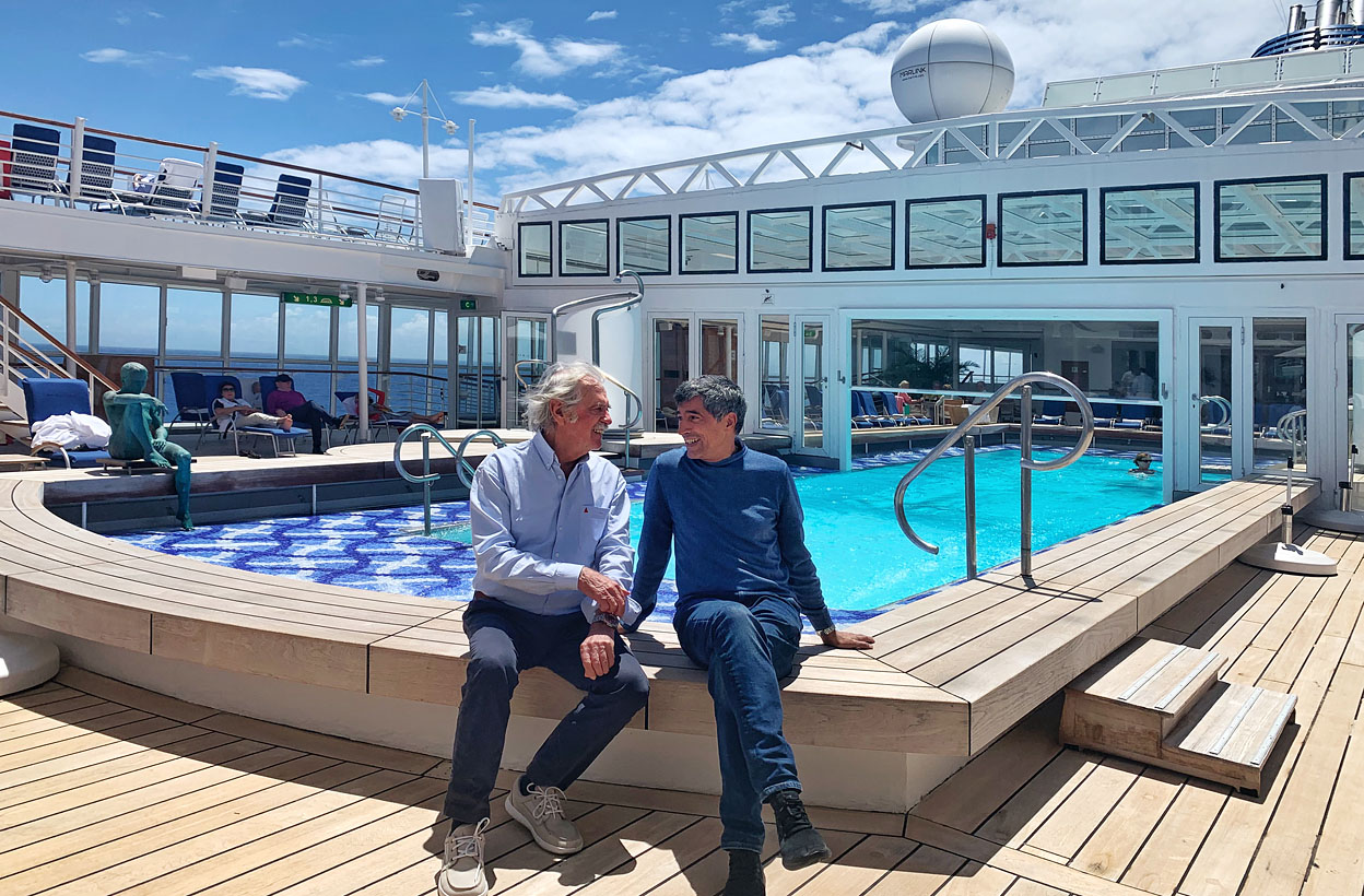 Bei uns im Garten musste wieder ein Tannenbaum dran glauben. Er verdeckte und beeinträchtigte unseren Gemüsegarten. Also ging ich mit einer Säge am 23. ran, am 24. stand er schon im Wohnzimmer und reichte bis zur Decke. Der Weihnachtsbaum der letzten Meldung steht an Bord des Schiffes »MS Europa«. Astrid und ich waren von Ranga Yogeshwar zu einer Überquerung des Südatlantiks von Kapstadt nach Buenos Aires eingeladen. An Bord des Kreuzfahrtschiffes ging es um das Thema Ozean: »Der blaue Planet Oase im Weltall«. Eingeladen hat uns freilich die Reederei Hapag-Lloyd.