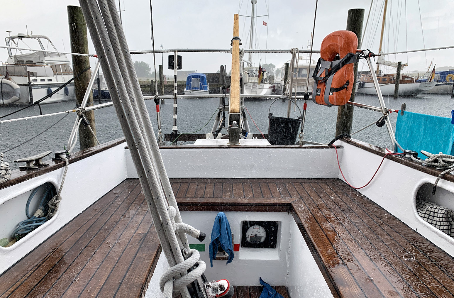 Irgendwann hatte Astrid ihren Gemüsegarten im Kopf. »Eigentlich müsste ich mal nach Hause fahren, um die dicken Bohnen abzuernten, die Erbsen, Tomaten undsoweiter.« Als wir Aarhus erreichten setzte sie sich in den Zug und war drei Stunden später in ihrem Garten. Beladen mit Obst und Gemüse kehrte sie zu »Kathena nui« zurück in meine Arme. Verletzten Fuß braucht man dafür nicht.