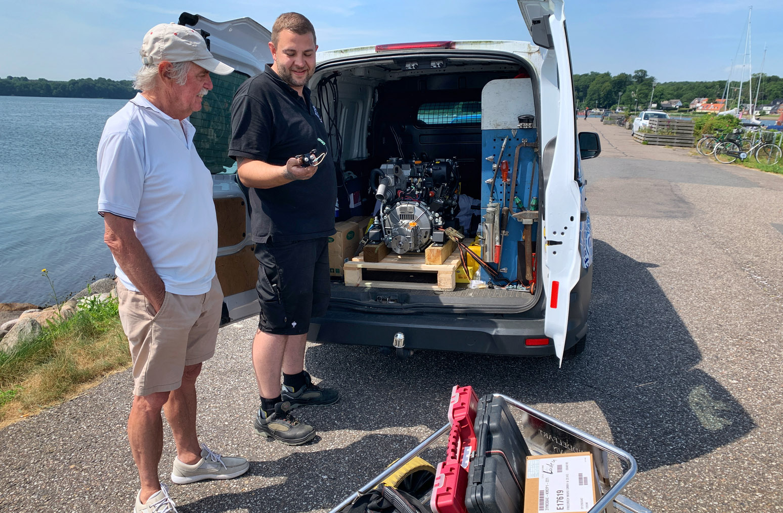 Unerwartet Middelfart besonders ausgiebig, denn wir mussten sechs Tage warten bis sich ein Monteur aus Kappeln auf den Weg machte und unseren Anlasser austauschte. Alle dänischen Firmen in Middelfart waren im Urlaub. Wilfrieds Kommentar dazu: »Das gibt bestimmt eine dicke Rechnung.« Und so war es auch, die Kilometer, dann die vielen Reserveteile und ein ganzer Motor für eventuelle Ersatzteile im Auto. Da staunten gar die Dänen im Hafen, als der Wagen am Steg stand.