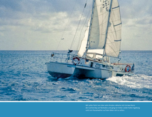 Später ein paar Stunden später vergleichen wir im Cockpit die Seekarten. Ingeborgs Kurs führt in Schlangenlinien über die Karte, der von KATHENA schnurgerade auf Barbados zu. Acht Tage Startdifferenz können in der allgemeinen Wetterlage viel ausmachen. Wir hatten mehr Glück. Nur an den letzten Tagen genossen beide Boote den gleichen Wind. In keiner Karte ist Ingeborgs Müdigkeit verzeichnet, das Brennen in der Lunge, das Zucken der nervösen Lider. Sie hat alles gemeistert.