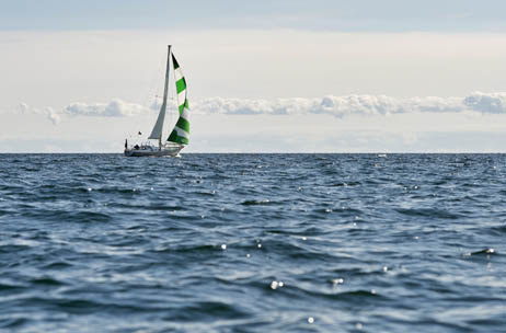 Wie wahr, es hat eine neue und ganz besondere Lebensphase begonnen, in der vielleicht alles »zum letzten Mal« passiert. Doch mit Kompetenz komme ich auf dem holprigen Vorschiff nicht weit. Ich weiß, wie reffen gehen soll, aber die körperliche »Kompetenz« fehlt eindeutig. Außerdem hat sich bei mir die große Lust am Kreuzen verabschiedet. Ich bin überhaupt nicht mehr wild darauf. Solcherlei Gedanken hatte ich nonstop nie. Nie, nie. Selbst nach wochenlangem Zickzackkurs nicht. Doch, einmal vielleicht, als ich eine harsche Woche mit ungemein hohen Brechern auf der Kreuz ertragen musste und irgendwie in Trance fiel. Völlig übermüdet sah ich einen Mann mir gegenüber auf der Koje sitzen, der genauso gekleidet war wie ich und den ich mit einem Schlag (in die Luft) umhaute. Das erzeugte in mir ein richtig gutes Gefühl, dass ich zur Not jemanden besiegen konnte, der mir dumm kommt und mich nachäfft. Ich merkte, dass mein Körper, meine Beine und Schultern stark waren. Schlagartig wurde ich wach, schämte mich und stellte fest, dass Gegenansegeln und Vorankommenwollen mich streng genommen überforderten. Aber damals war ich 60 Jahre alt und schon viele Monate allein unterwegs. Und jetzt? Es ist erst der zweite Tag, und ich bin nicht allein.